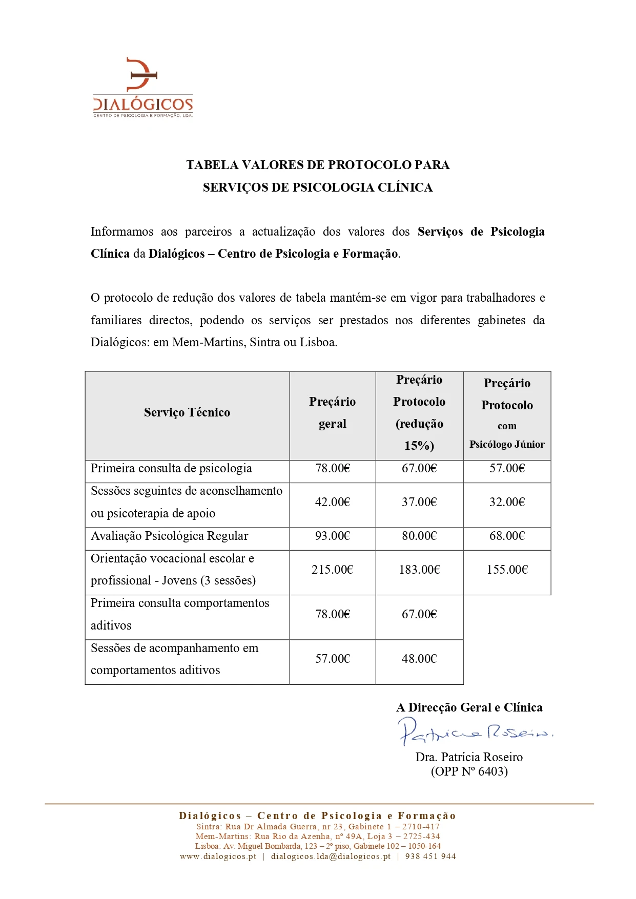 O Centro de Cultura e Desporto Sintrense tem um protocolo estabelecido com a Dialógicos – Centro de Psicologia e Formação, Lda.